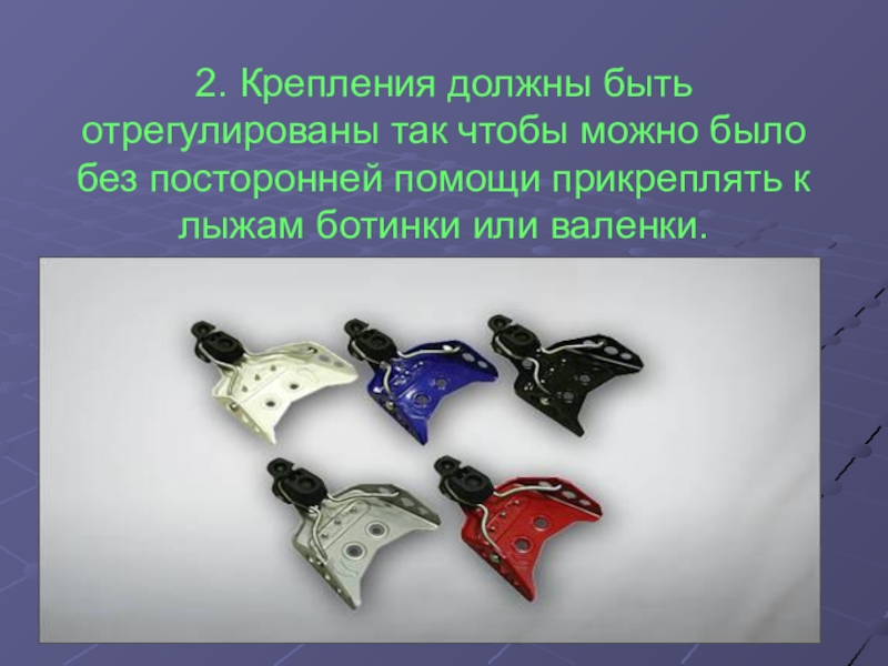 2. Крепления должны быть отрегулированы так чтобы можно было без посторонней