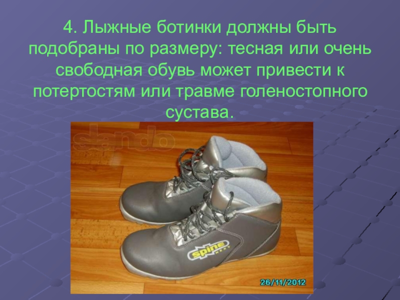 4. Лыжные ботинки должны быть подобраны по размеру: тесная или очень