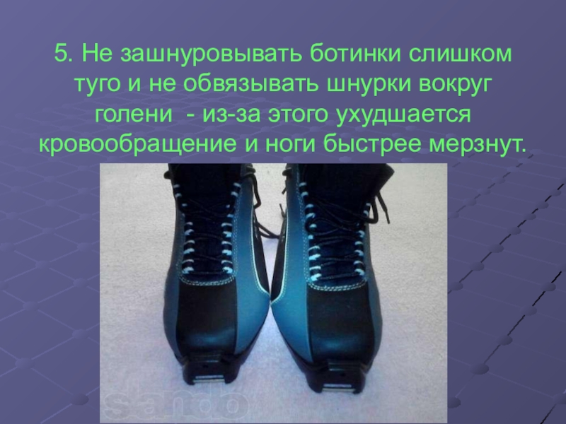 5. Не зашнуровывать ботинки слишком туго и не обвязывать шнурки вокруг