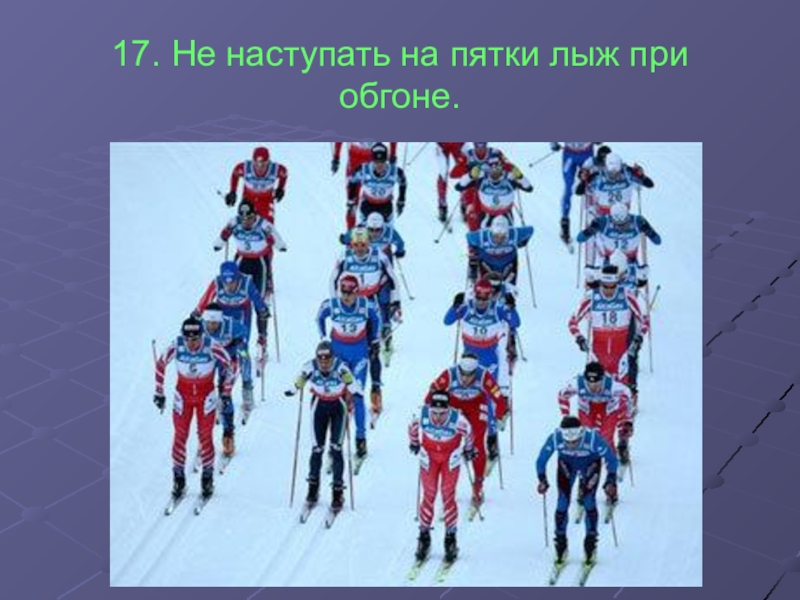 Слайд 1817. Не наступать на пятки лыж при обгоне.