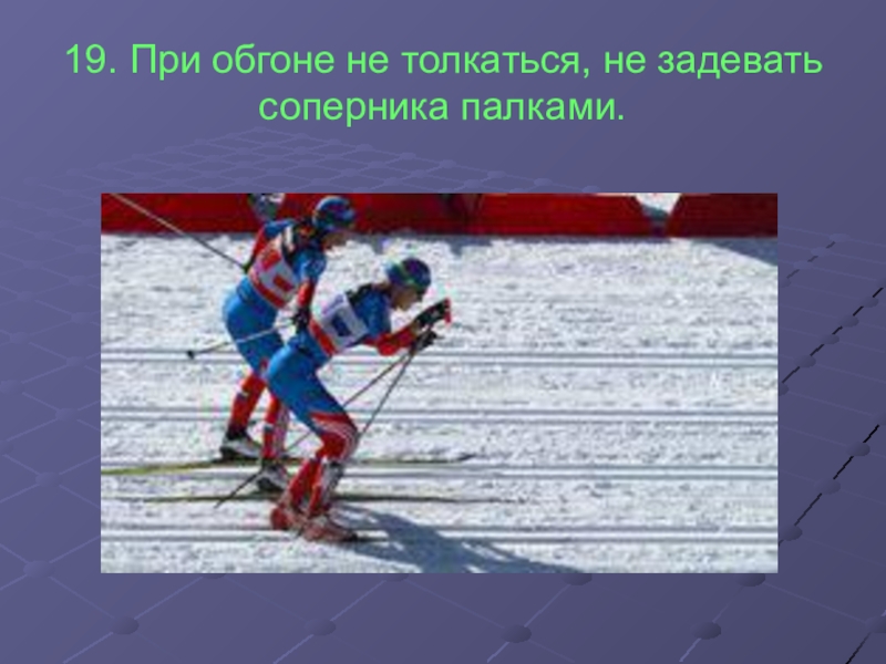 Слайд 2019. При обгоне не толкаться, не задевать соперника палками.