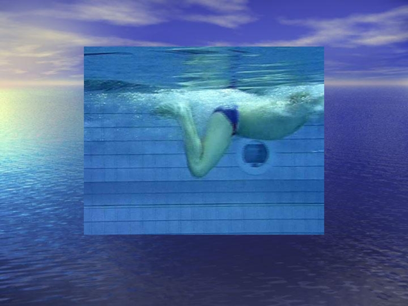 Движения ногами В момент гребка руками (чтобы скомпенсировать сопротивление воды)выполняется одновременное подтягивание обеих ног. В момент гребка
