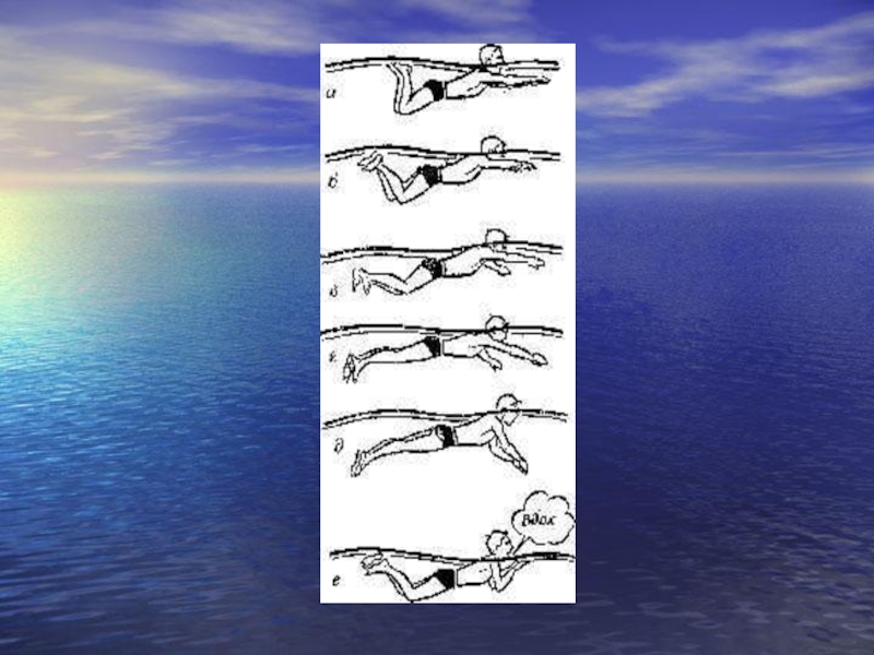 Затем голова опускается лицом в воду и после небольшой начинается выдох через рот и нос.