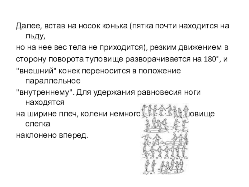 Слайд 10Далее, встав на носок конька (пятка почти находится на льду,