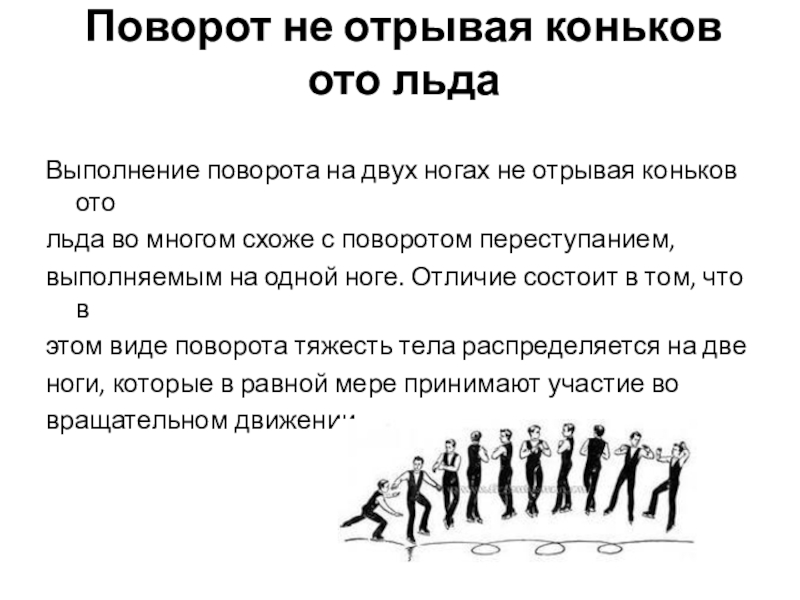Поворот не отрывая коньков ото льда Выполнение поворота на двух ногах не отрывая коньков отольда во многом