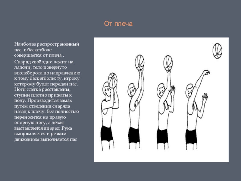 Наиболее распространенный пас в баскетболе совершается от плеча .