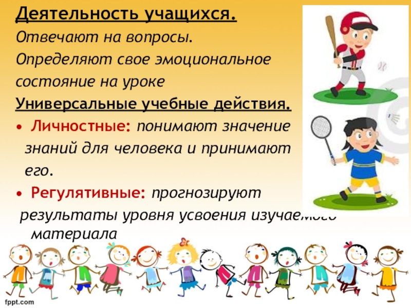познавательные – овладеют способностью оценивать свои достижения, отвечать на вопросы,