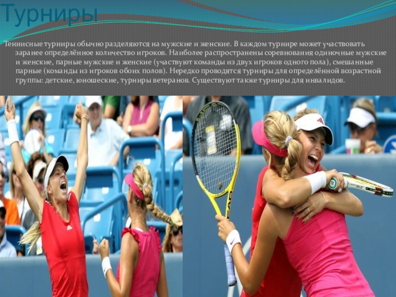 Теннисные турниры обычно разделяются на мужские и женские. В каждом турнире