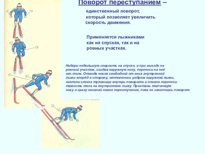 лыжи вперёд в сторону, оттолкнись ребром наружной лыжи,