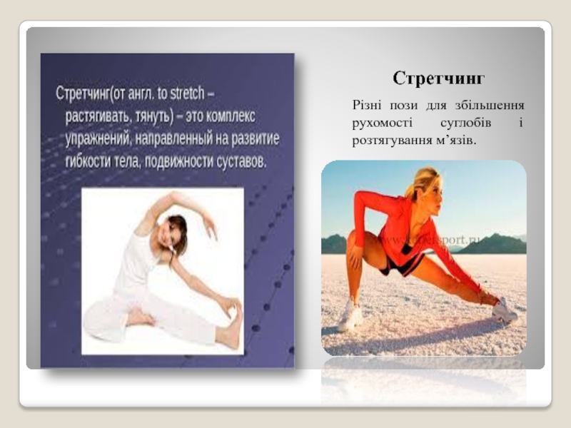 Різні пози для збільшення рухомості суглобів і розтягування м’язів.