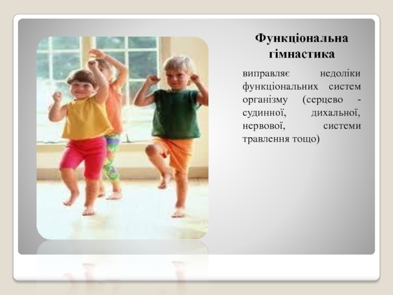 виправляє недоліки функціональних систем організму (серцево -судинної, дихальної, нервової, системи