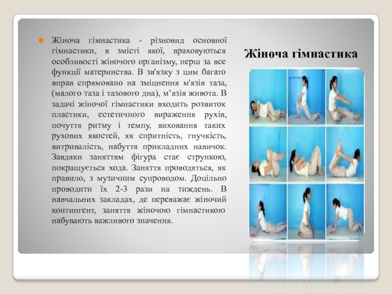 Жіноча гімнастика - різновид основної гімнастики, в змісті якої, враховуються