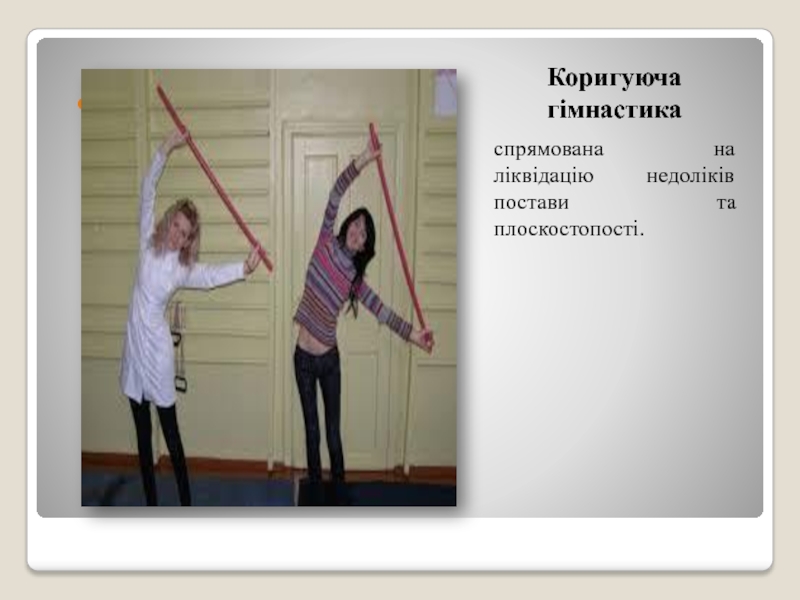 спрямована на ліквідацію недоліків постави та плоскостопості.