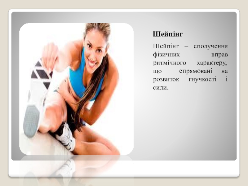 Шейпінг – сполучення фізичних вправ ритмічного характеру, що спрямовані на розвиток
