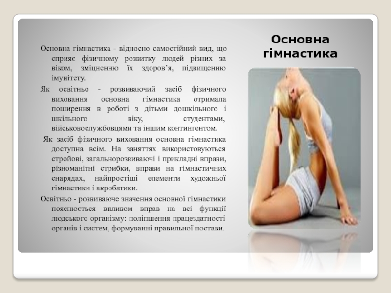 Основна гімнастика - відносно самостійний вид, що сприяє фізичному розвитку