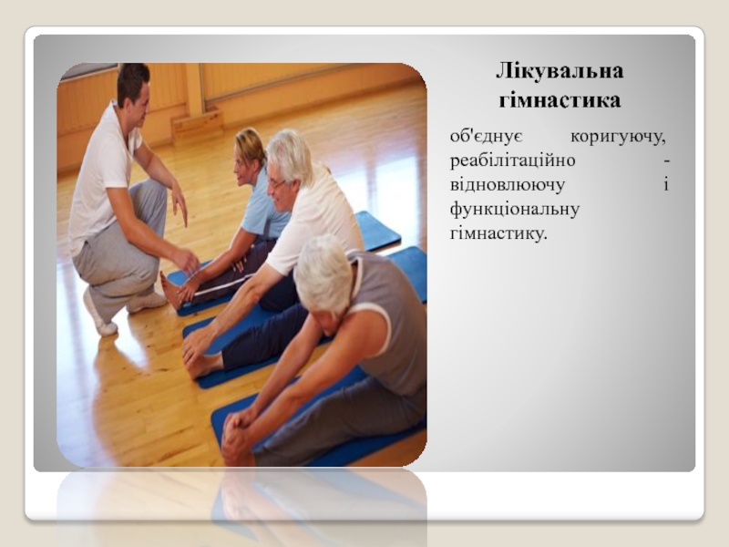 об'єднує коригуючу, реабілітаційно - відновлюючу і функціональну гімнастику.
