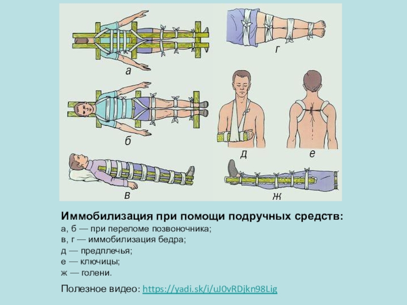 Иммобилизация при помощи подручных средств:     https://yadi.sk/i/uJ0vRDjkn98Lig