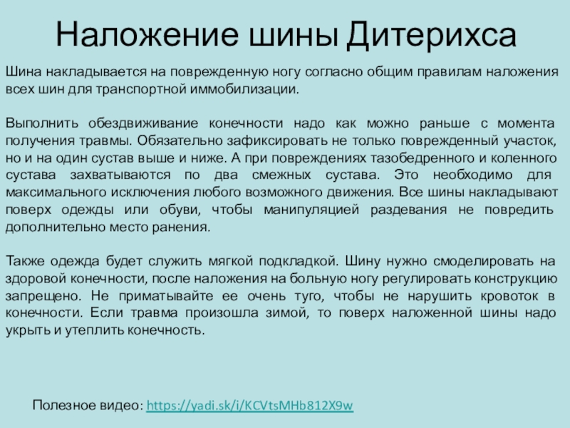 Презентация, доклад на тему ТРАНСПОРТНАЯ ИММОБИЛИЗАЦИЯ ПРИ ТРАВМАХ