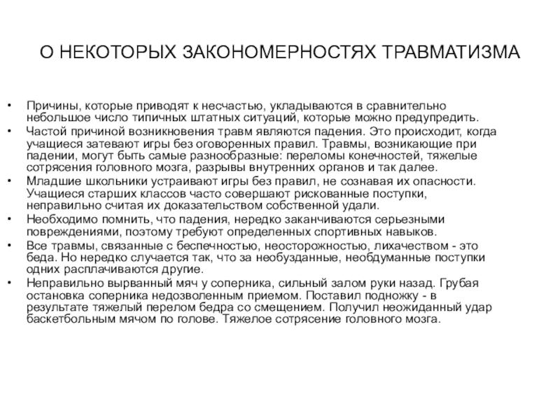 Слайд 8О НЕКОТОРЫХ ЗАКОНОМЕРНОСТЯХ ТРАВМАТИЗМА