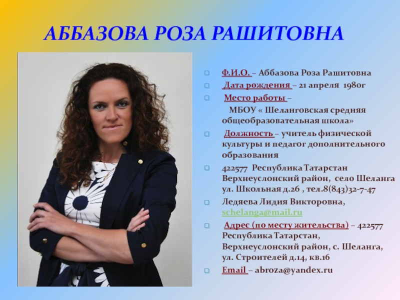 Слайд 2Аббазова Роза Рашитовна