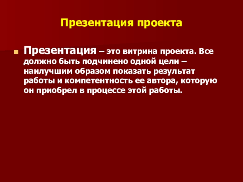 Презентация – это витрина проекта. Все должно быть подчинено одной цели –