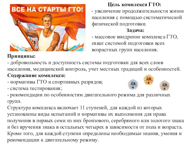 - добровольность и доступность системы подготовки для всех слоев населения, медицинский контроль, учет местных традиций и особенностей.