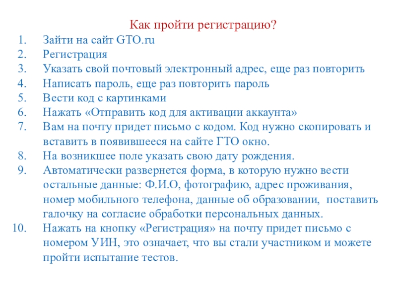 Нажать на кнопку «Регистрация» на почту придет письмо с номером УИН, это означает, что вы стали участником и можете пройти испытание тестов.