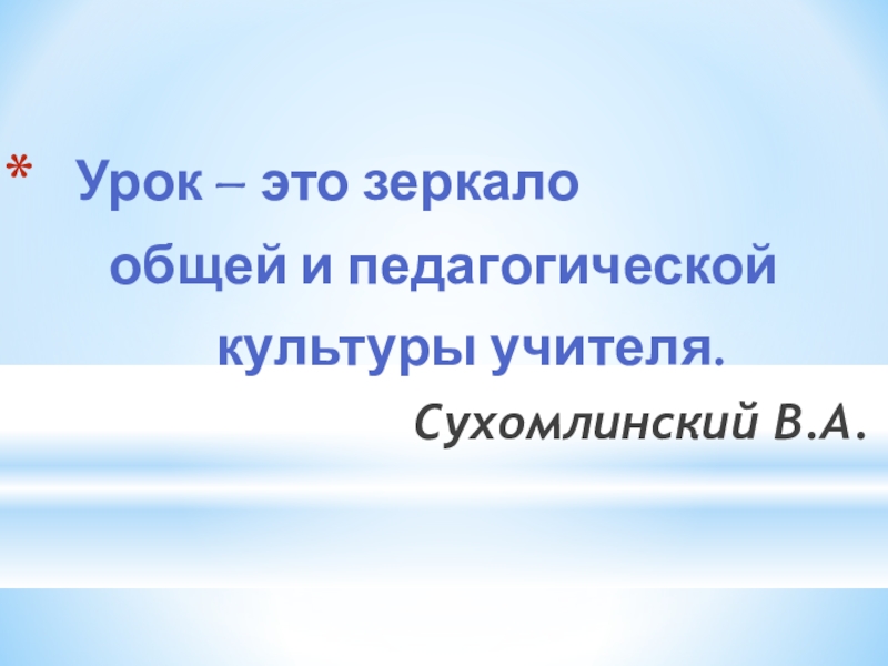 Урок – это зеркало общей и педагогической культуры учителя.