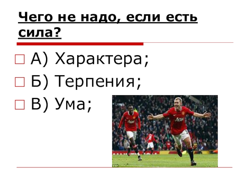Чего не надо, если есть сила? А) Характера;Б) Терпения;В) Ума;