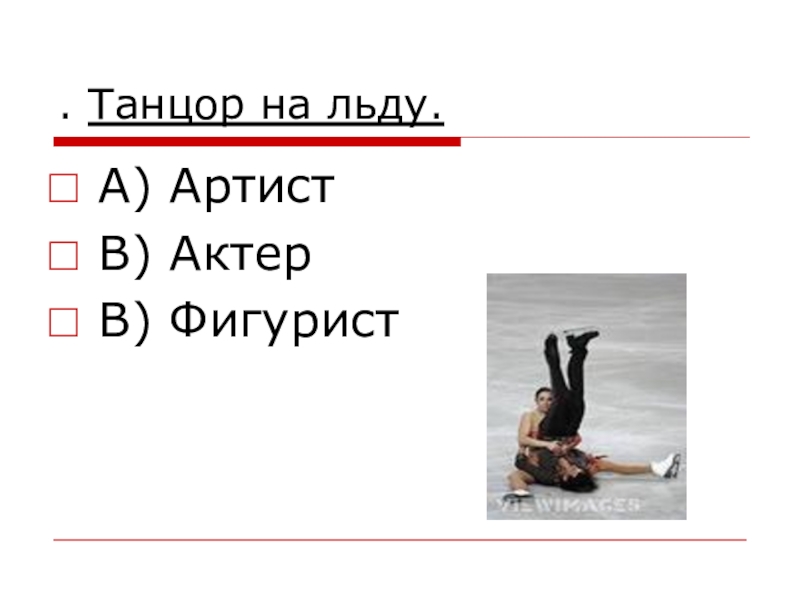 . Танцор на льду.А) АртистВ) АктерВ) Фигурист