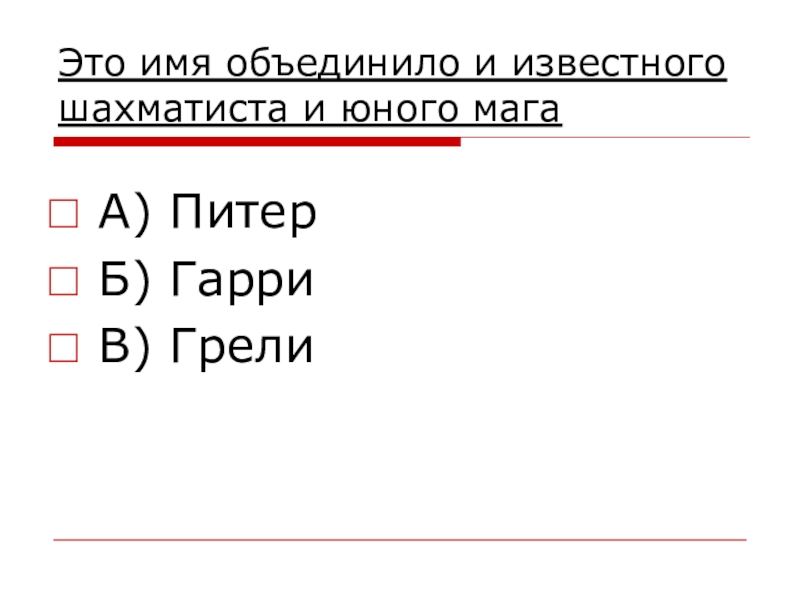 Это имя объединило и известного шахматиста и юного мага А) ПитерБ) ГарриВ) Грели