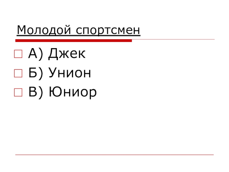 Молодой спортсмен А) ДжекБ) Унион В) Юниор