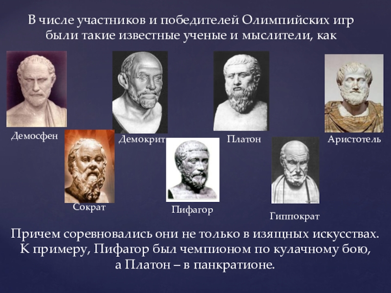 К примеру, Пифагор был чемпионом по кулачному бою,
