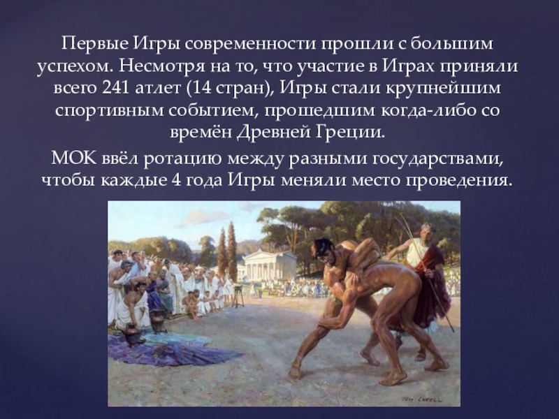Слайд 7Первые Игры современности прошли с большим успехом. Несмотря на то, что