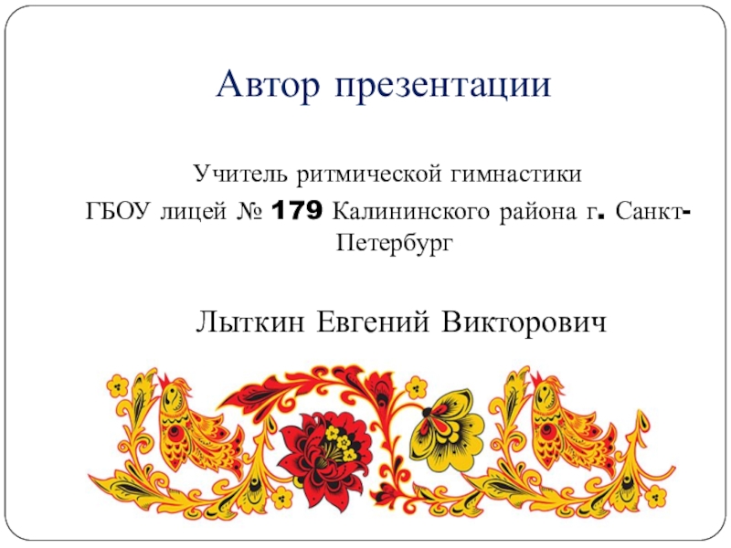 Автор презентации Учитель ритмической гимнастики ГБОУ лицей № 179 Калининского района г. Санкт-Петербург   Лыткин Евгений