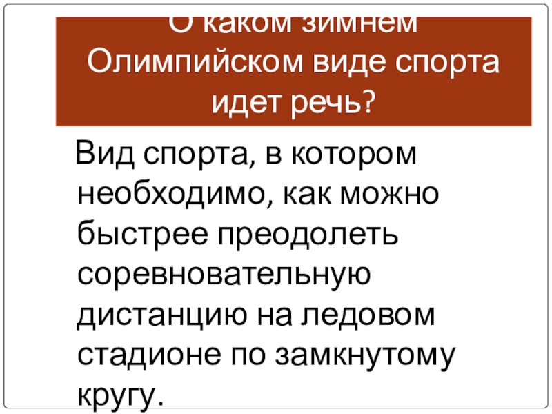 О каком зимнем Олимпийском виде спорта идет речь? Вид спорта, в котором спортсменам необходимо как можно быстрее
