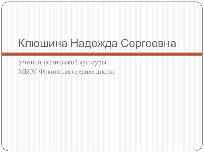 Клюшина Надежда СергеевнаУчитель физической культурыМБОУ Фокинская средняя школа