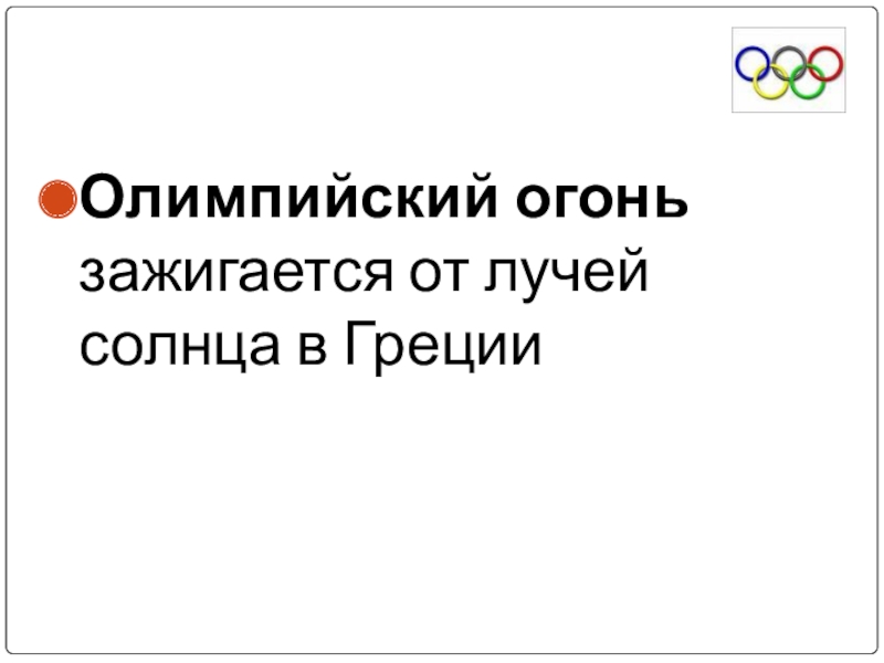 Слайд 13Олимпийский огонь зажигается от лучей солнца в Греции