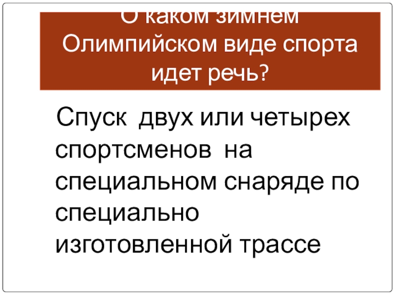 О каком зимнем Олимпийском виде спорта идет речь? Спуск двух или четырех спортсменов на специальном снаряде по