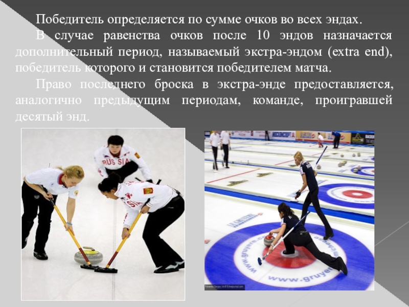 Слайд 10 Победитель определяется по сумме очков во всех эндах.