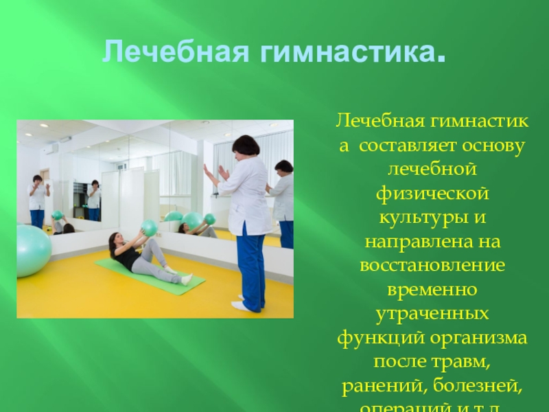 Лечебная гимнастика составляет основу лечебной физической культуры и направлена на