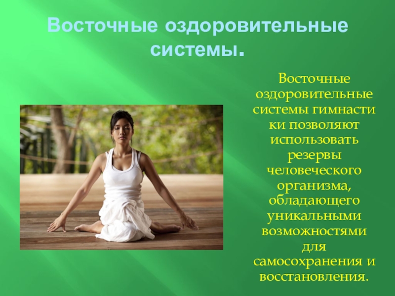 Восточные оздоровительные системы гимнастики позволяют использовать резервы