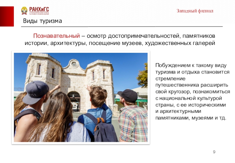 Побуждением к такому виду туризма и отдыха становится стремление путешественника расширить свой кругозор, познакомиться с национальной культурой страны, с ее историческими и архитектурными памятниками, музеями и тд.