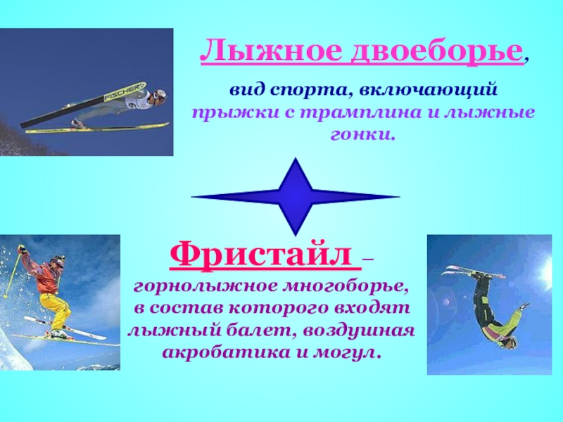 Фристайл – горнолыжное многоборье, в состав которого входят лыжный балет, воздушная акробатика и могул.