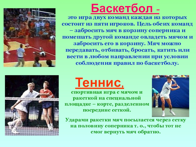 спортивная игра с мячом и ракеткой на специальной площадке – корте, разделенном посредине сеткой.