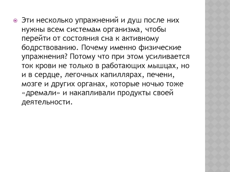Слайд 12Эти несколько упражнений и душ после них нужны всем системам организма,
