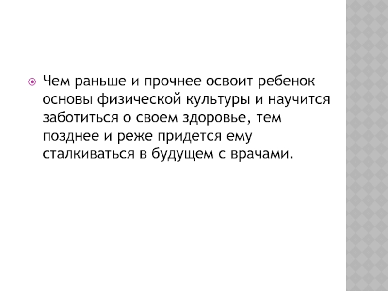 Слайд 22Чем раньше и прочнее освоит ребенок основы физической культуры и научится