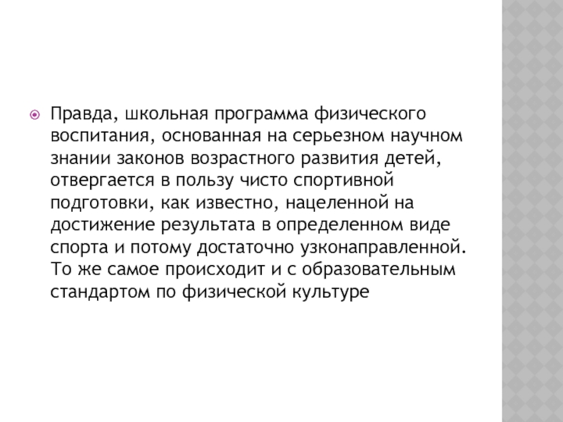 Слайд 26Правда, школьная программа физического воспитания, основанная на серьезном научном знании законов