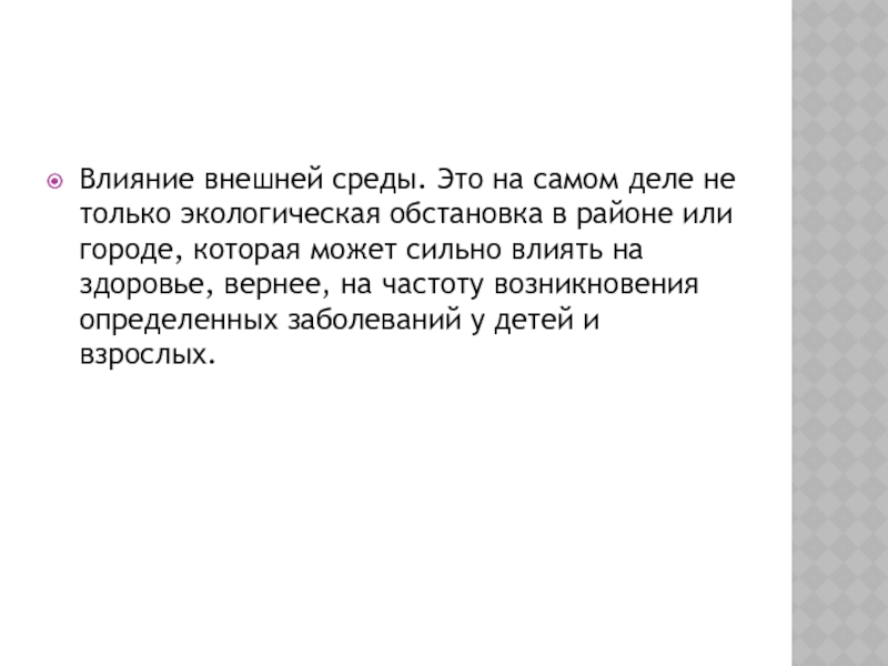 Слайд 9Влияние внешней среды. Это на самом деле не только экологическая обстановка