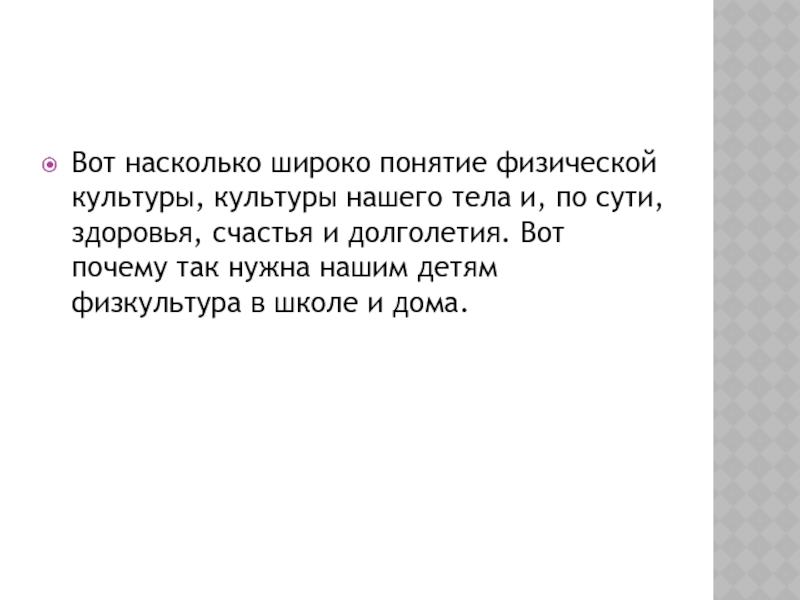 Слайд 19Boт насколько широко понятие физической культуры, культуры нашего тела и, по